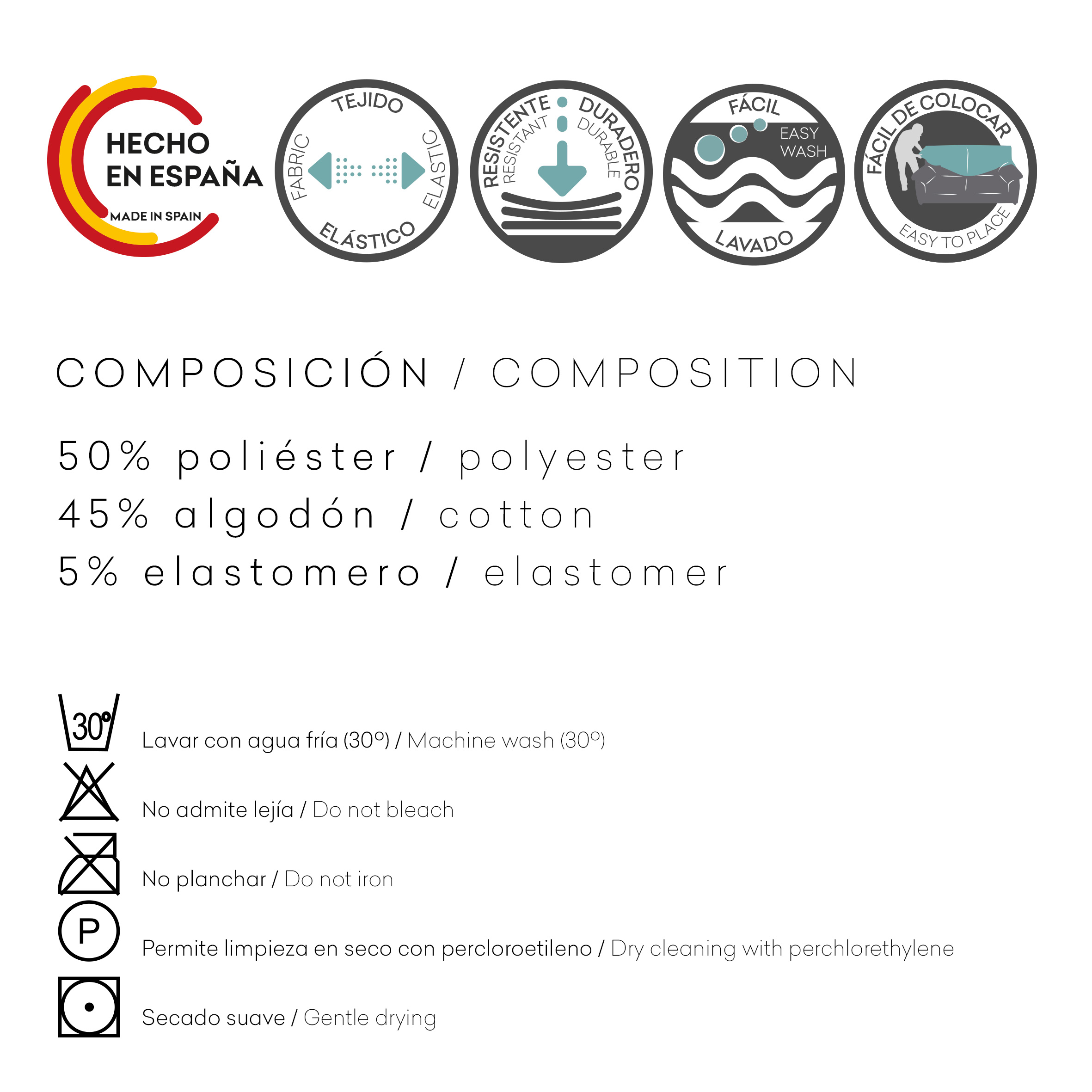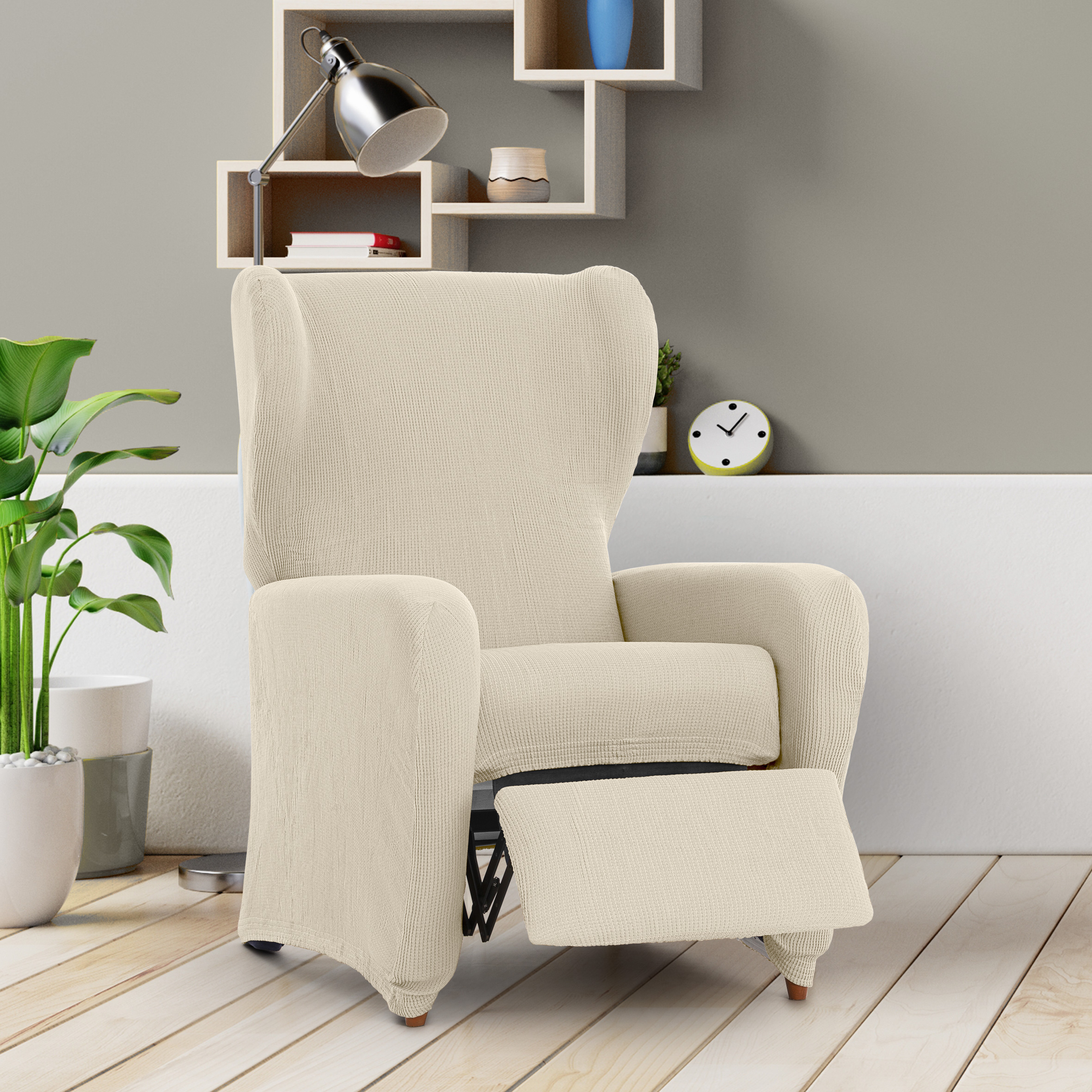 Funda de tejido elástico de Jacquard, que se adapta perfectamente al sillón, protegiéndolo del desgaste diario. Es transpirable y nos ayuda a renovar el sillón con poco presupuesto sin renunciar a la calidad. Fácil de poner y quitar. Contiene cuatro piezas: una que cubre asiento y respaldo, dos piezas para los brazos y una para el reposapiés, pareciendo prácticamente como un tapizado.